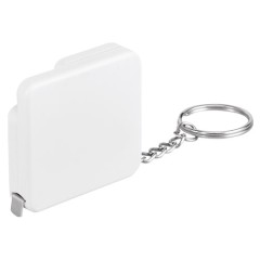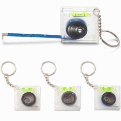 Llavero plástico con metro de 1mt con nivelador. Medidas: 4.2 cm x 4.2 cm x 0.9 cm. Marca: 2.5 cm / Tampografía. Ficha Técnica
