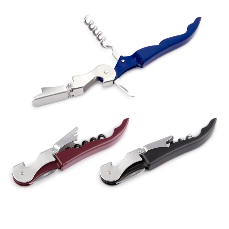 Sacacorchos de 2 tiempos, con destapador de botellas y navaja.