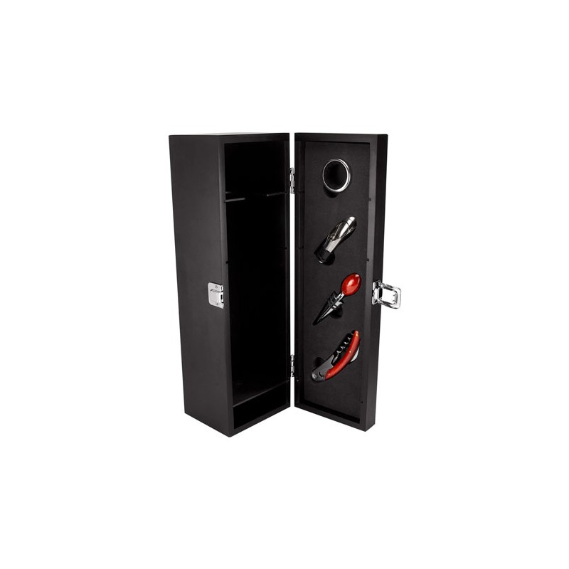 Descripción 1: SET PARA VINOS CABERNETDescripción 2: Incluye sacacorchos con navaja y destapador, stopper, boquilla, arillo y estuche con espacio para almacenar una botella (no incluida).T
