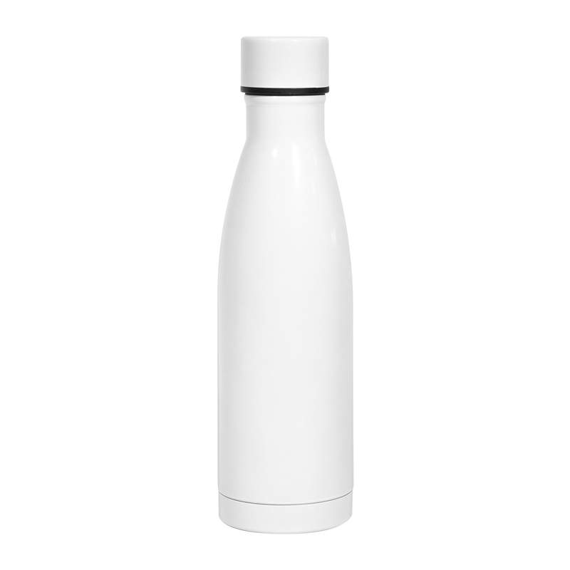 Ø 7 x 25,5 cm. Capacidad 500 ml. Acero inoxidable. Botella con aislamiento térmico vacuum. Interior de acero 304 y exterior de acero 201. Cuerpo y tapa a rosca del mismo color. Mantiene hasta 8 hs la temperatura de las bebidas calientes y hasta 12 hs la de las bebidas frías. Presentación en caja de regalo.