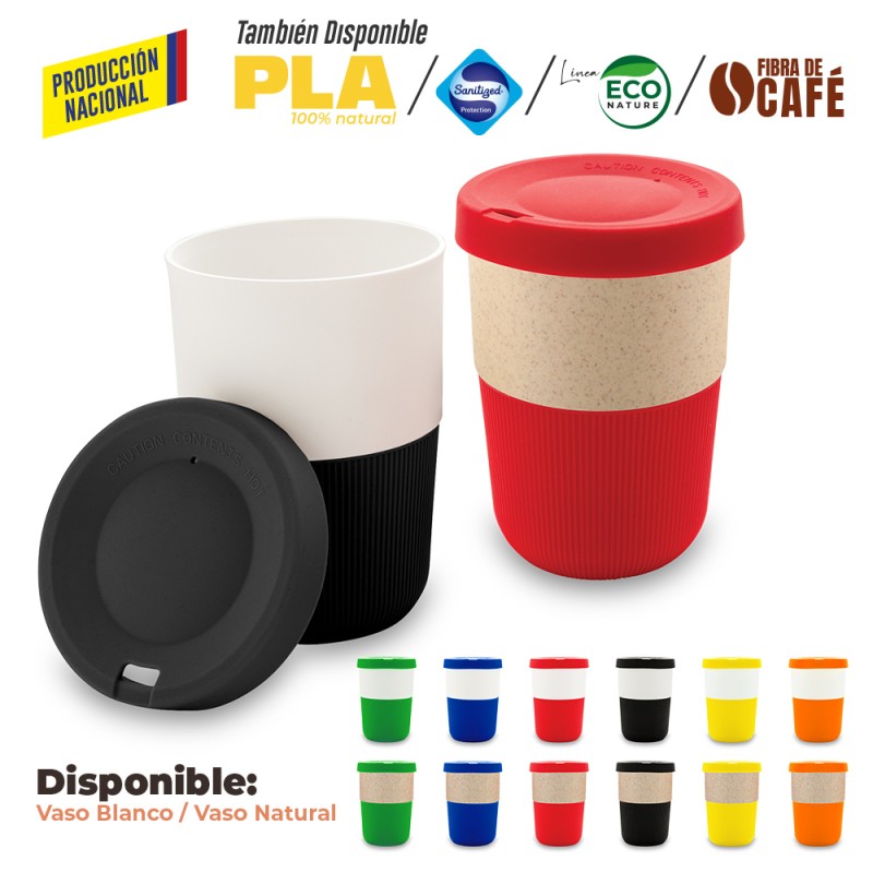Vaso blanco en polipropileno. Tapa y base en silicona importada. La tapa es una tapa protectora de cierre a presión, no es tapa de seguridad. Medidas:10.5 cm x 8.5 cm diámetro . Marca: Tampografía, producto con tratamiento