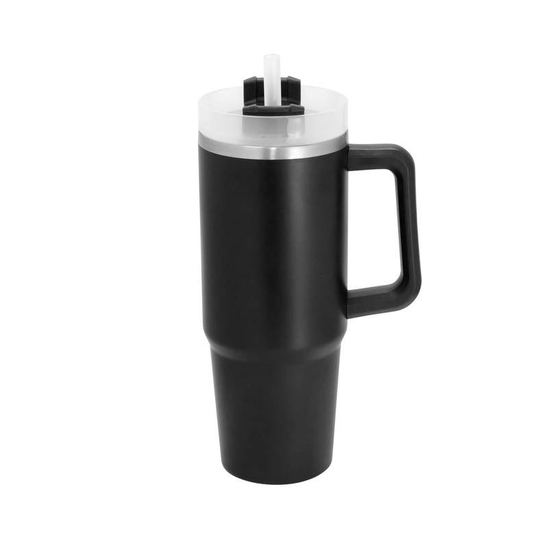 Diseño Térmico. El favorito de quienes nunca se detienen. Mug doble pared, sellado al vacío con sorbete. Tecnología Vacuum. Interior en acero 304 y exterior en acero 201. Tapa plástica transparente a rosca con anillo de silicona. Cierre giratorio porta sorbete. Sorbete plástico translucido. Pintura exterior con acabado mate. Mantiene hasta 8 hs la temperatura de las bebidas calientes y hasta 12 hs la de las bebidas frías.  Medidas: Ø 8,8 cm x 24 cm.  Capacidad: 880 ml.  Materiales: Acero inoxidable y Polipropileno.   Presentación: en caja de regalo kraft.