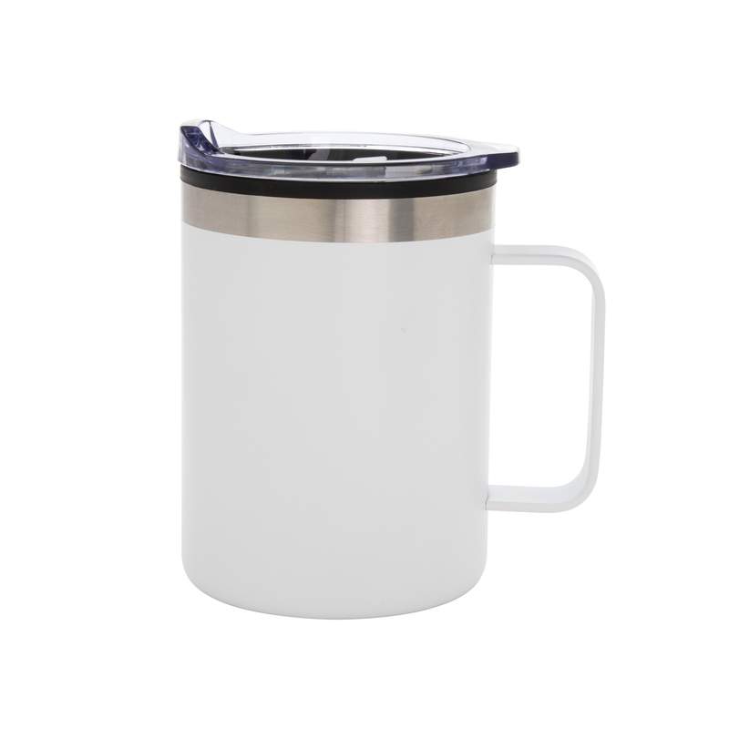 Hidrátate con modernidad.Mug doble pared. Interior de polipropileno y exterior de acero 201. Tapa plástica transparente a presión con anillo de silicona. Pintura acabado semimate. Base ne