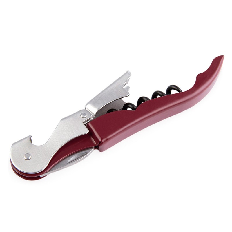 Sacacorchos de 2 tiempos, con destapador de botellas y navaja.