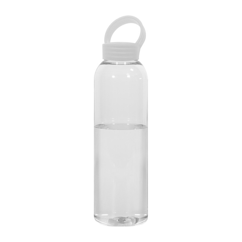 Botella de plástico transparente con tapa a rosca plástica. Medidas: Ø 6,5 x 21,5 cm. (sin tapa) y  Ø 6,5 x 25 cm. (con tapa) Capacidad: 600 ml. Peso: 61 g. (botella) y 12 g. (tapa) Materiales: Plastico PET y polipropileno. ATENCIÓN  Botella y tapa se entregan por separado. / No utilizar con bebidas gaseosas ni líquidos calientes. / El manejo de este producto es delicado. / No exponer al sol y temperaturas altas por tiempo prolongado.