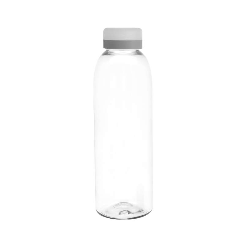 Diseño práctico para un uso diario.Botella de plástico transparente con tapa a rosca esmerilada con anillo de silicona de diferentes colores.Medidas: Ø 7 x 23 cm.  Capacidad: 780 ml. Peso: 70 g. (botella) y 15g. (tapa)  Materiales: PET Cristalino.  ATENCIÓN  Botella y tapa se entregan por separado. / No utilizar con bebidas gaseosas ni líquidos calientes. / El manejo de este producto es delicado. / No exponer al sol y temperaturas altas por tiempo prolongado.