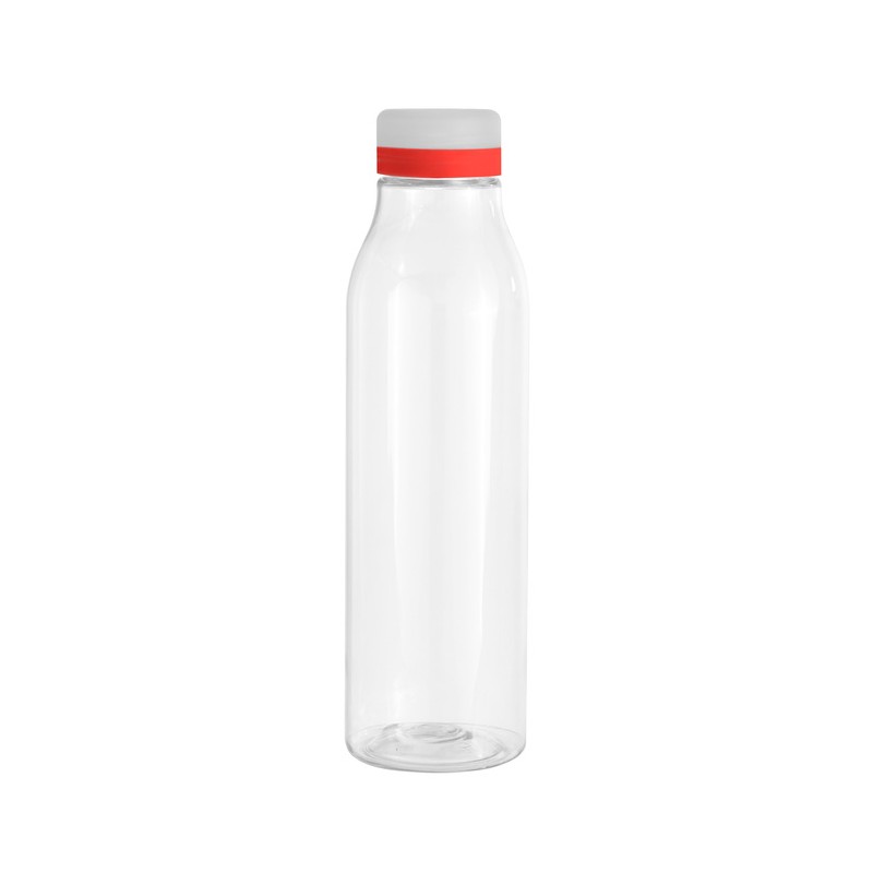 Frescura a tu lado.Botella de plástico transparente con tapa a rosca esmerilada con anillo de silicona de diferentes colores.Medidas: Ø 7 x 24,5 cm.  Capacidad: 750 ml.  Peso: 70 g. (botella) y 15g. (tapa)  Materiales: PET Cristalino.  ATENCIÓN  Botella, tapa y anillo de silicona se entregan por separado. / No utilizar con bebidas gaseosas ni líquidos calientes. / El manejo de este producto es delicado. / No exponer al sol y temperaturas altas por tiempo prolongado.