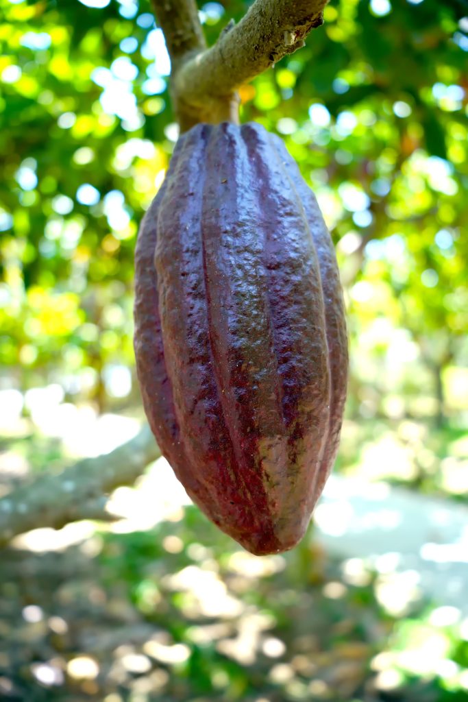 una ilustración de una vaina de cacao, con curvas marcadas y una silueta que parecía bailar en la página.