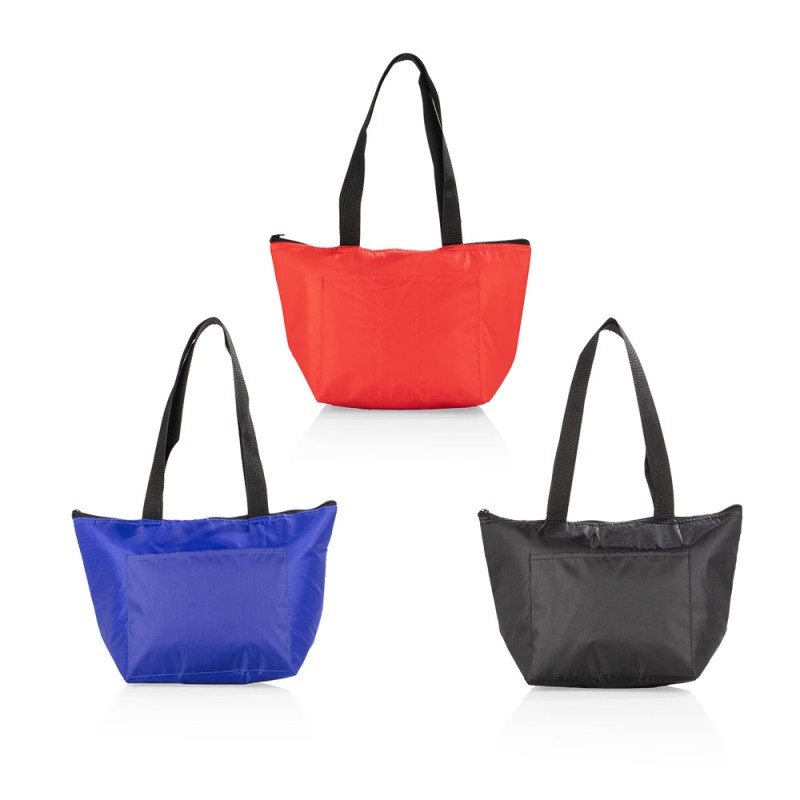 Lonchera térmica con cremallera, agarraderas, bolsillo frontal sin cremallera y revestimiento interior en aluminio para conservar la temperatura por un mayor tiempo.