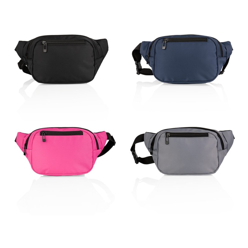 Canguro con bolsillo frontal y trasero con cremallera. Cuenta con una correa ajustable a la cintura con broche de hebilla plástico.