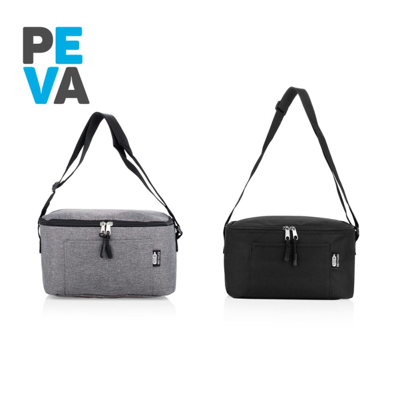 Lonchera con recubrimiento interno, diseño sofisticado, cierre de cremallera con doble deslizador y bolsillo pequeño en la parte frontal. Manija con hebilla para regular el largo del agarr