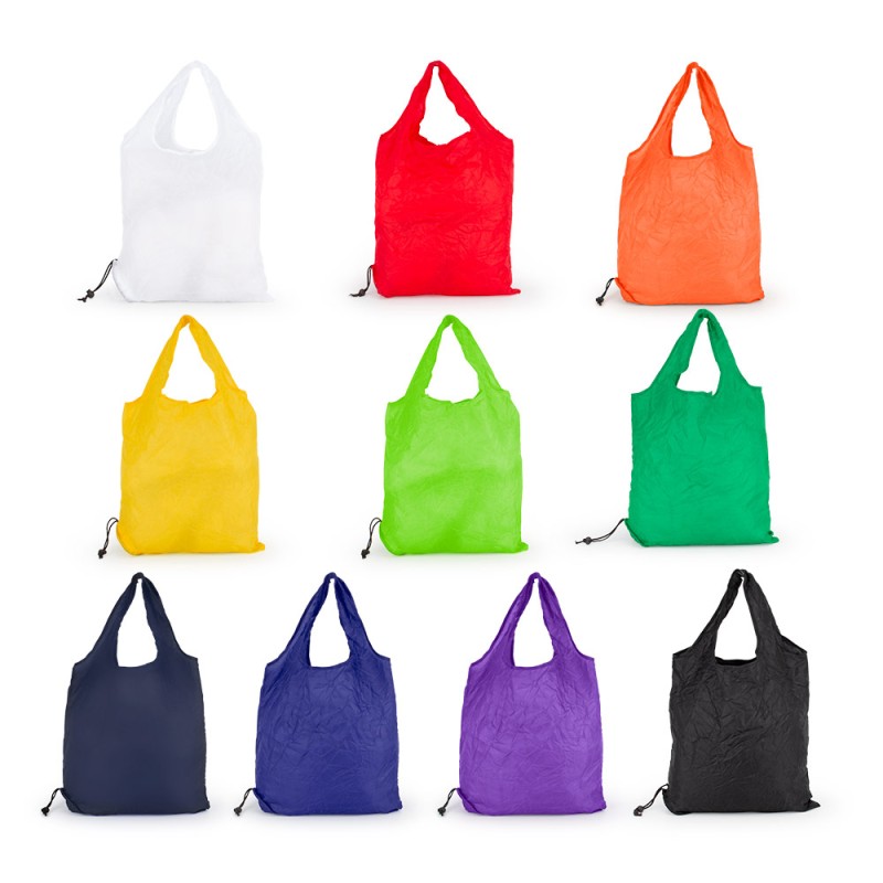 Bolso plegable con cordón para fácil almacenamiento. Viene en presentación plana.