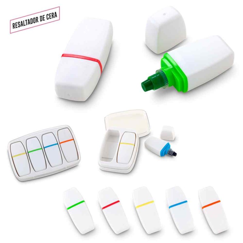 Mini resaltador plástico en cera. No se seca. Medidas: 5.5 cm x 2 cm x 1.2 cm Marca: 2 cm / Tampografía Ver opciones de estuche: OF-456-2 OF-456-4 Producto con condic