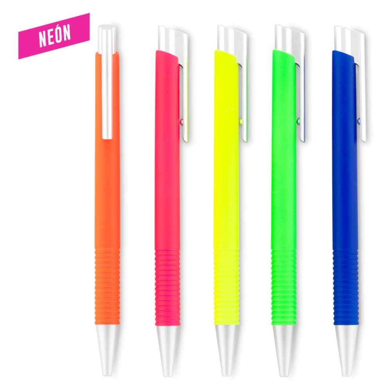 Bolígrafo plástico en colores neón. Medidas: 14 cm Marca: 2.5 cm / Tampografía Venta mínima y en múltiplos de caja de 50 unidades por color.&nb