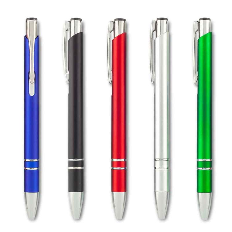 Bolígrafo plástico. Clip metálico. Mecanismo push. Medidas:13.5 cm Marca:3 cm/Tampografía Venta mínima y en múltiplos de caja de 50 unidades po