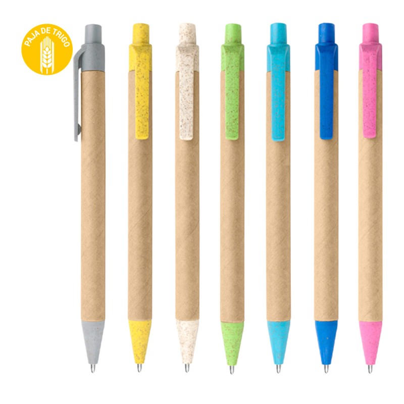 Bolígrafo ecológico con sistema retráctil. Paja de trigo en la parte superior e inferior (Bolígrafo/Esfero)