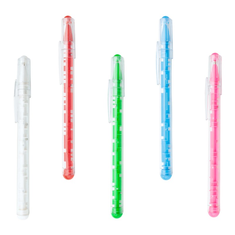 Bolígrafo plástico con tapa, en la parte interna tiene un jueego para disfrutar mientras se utiliza (Bolígrafo/Esfero)