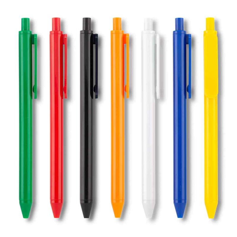 Bolígrafo plástico. Mecanismo push. Medidas: 14.5 cm Marca: 3.5 cm / Tampografía Venta mínima y en múltiplos de caja de 50 unidades por color.