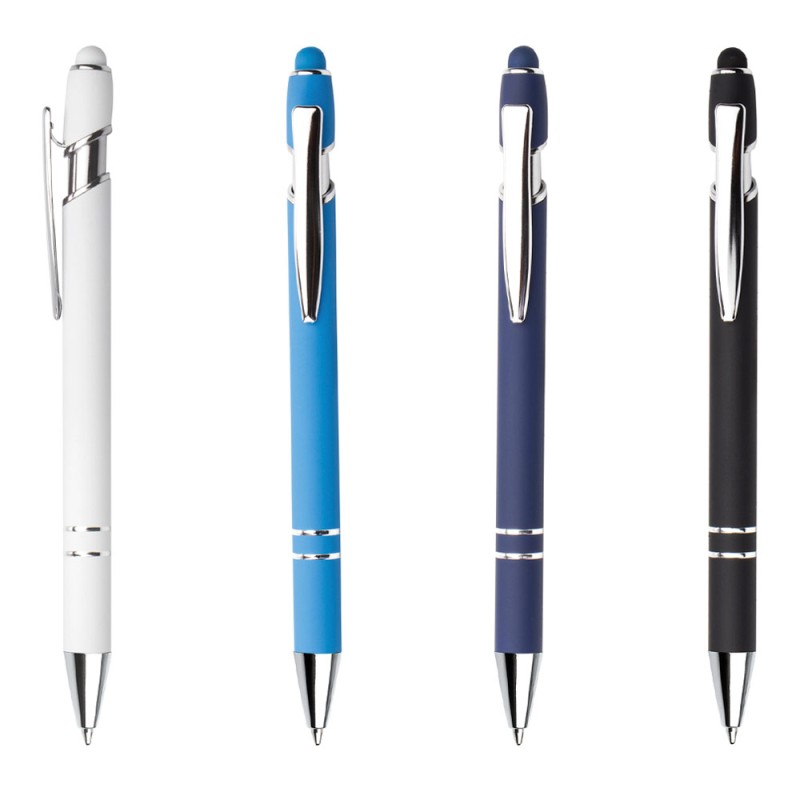 Bolígrafo con cuerpo de color de goma suave, clip metálico brillante sistema de apertura retráctil. (Bolígrafo/Esfero)