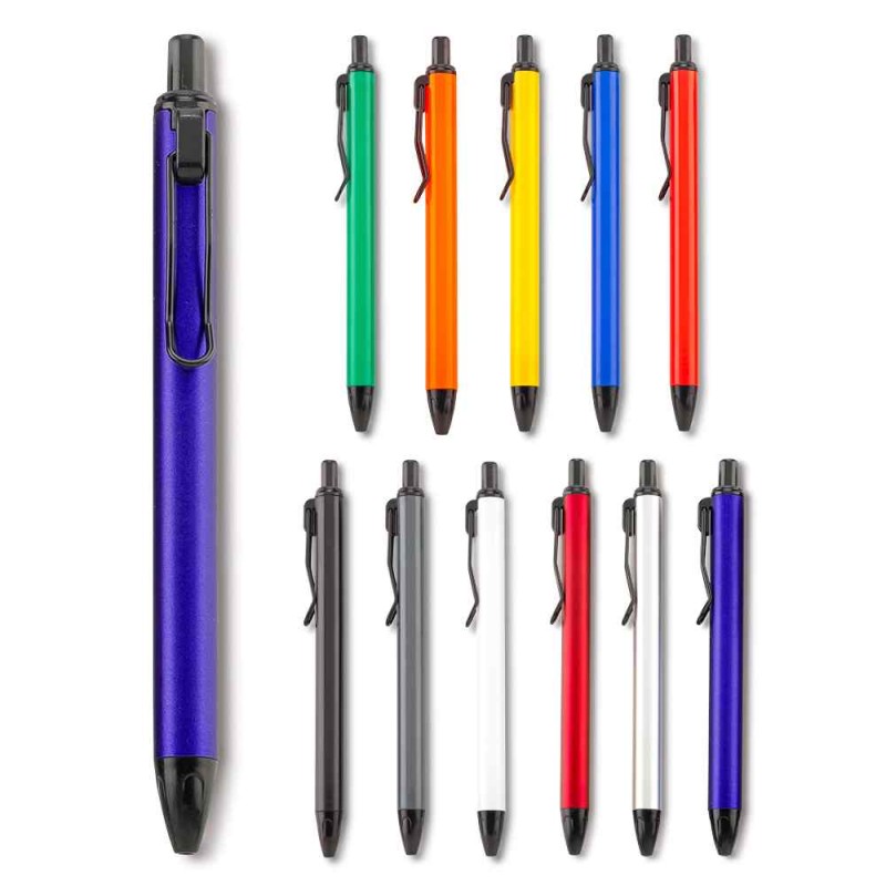Bolígrafo plástico. Mecanismo push. Clip metálico. Medidas: 14.5 cm. Marca: 4 cm / Tampografía Venta mínima y en múltiplos de caja de 50 unida