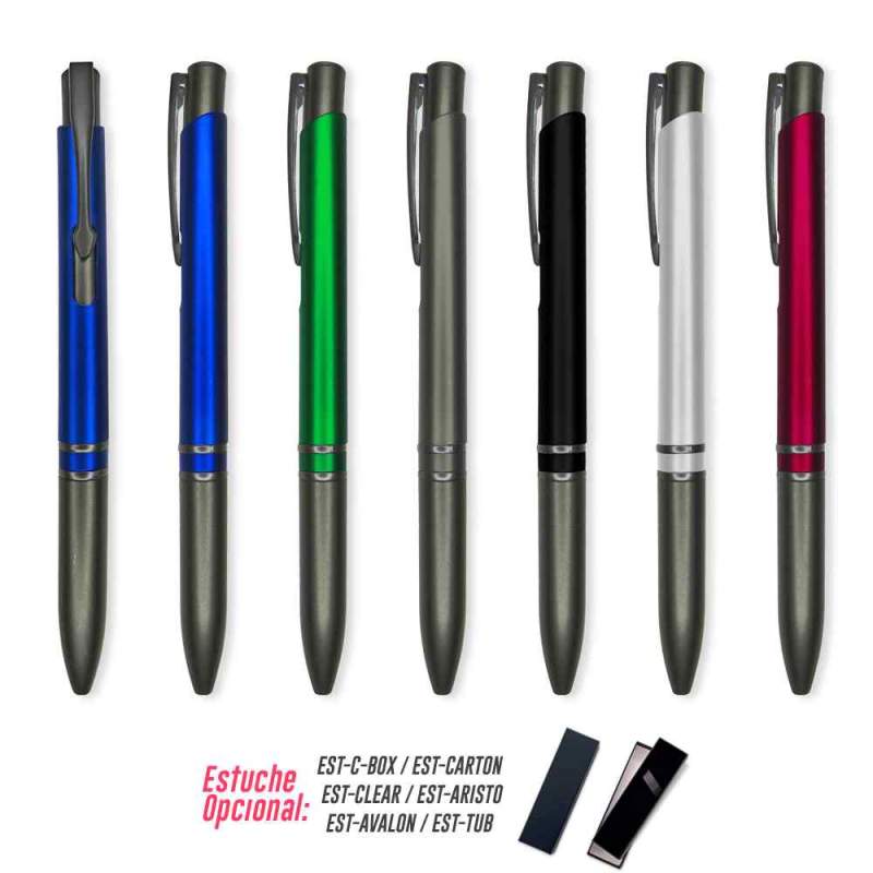 Bolígrafo plástico. Mecanismo push. Clip metálico. Medidas: 13.5 cm. Marca: 4 cm. / Tampografía Venta mínima y en múltiplos de caja de 50 unidades por color.   Ficha Técnica Ver: EST-C-BOX EST-CARTON EST-CLEAR EST-ARISTO EST-AVALON EST-TUB