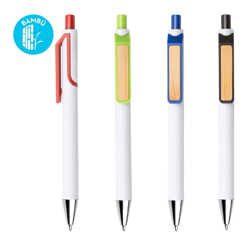 Bolígrafo de plástico con sistema retráctil y clip de bambú que puede ser usado como espacio de marca. (Bolígrafo/Esfero)