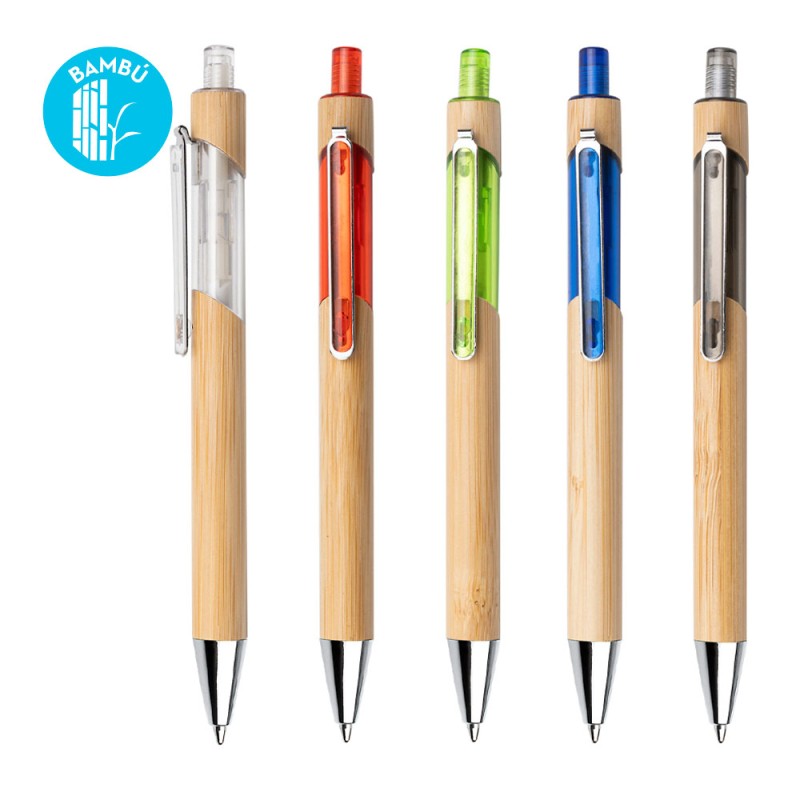 Bolígrafo ecológico de bambú con sistema de apertura retráctil gracias a la combinación con el plástico transparente su diseño es más llamativo. (Bolígrafo/Esfero)