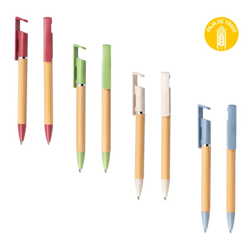 Bolígrafo ecológico diseñado con pequeño sistema de soporte para el celular. Sistema de apertura twist. (Bolígrafo/Esfero)