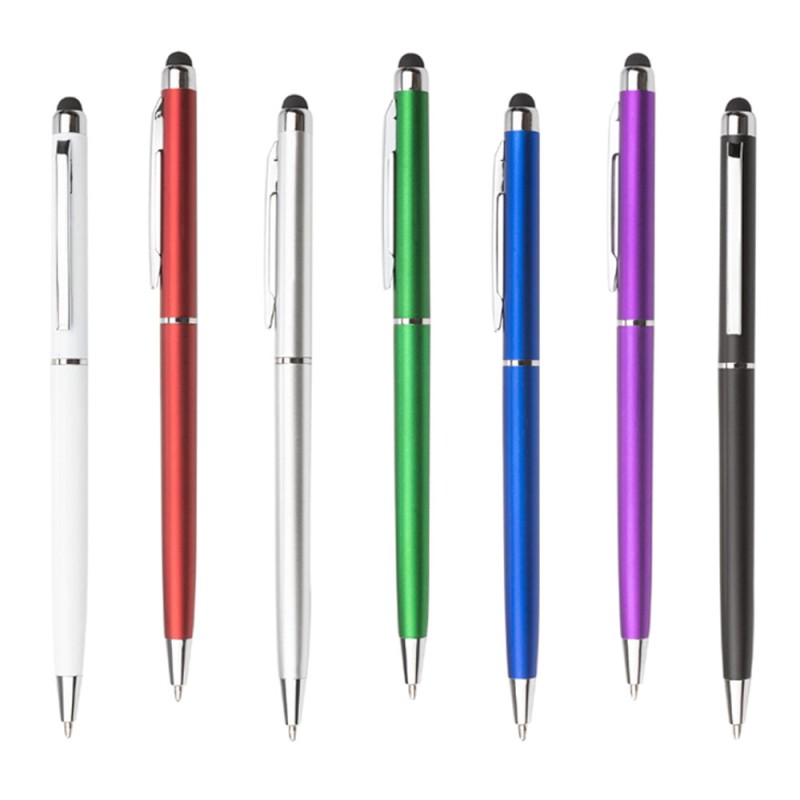 Elegante Bolígrafo que combina funcionalidad y estilo, cuenta con un acabado de pintura metálica que le da un aspecto sofisticado. El clip de hierro proporciona una sujeción segura a cualquier bolsillo o cuaderno. Su stylus en la parte superior es perfecto para usar con dispositivos de pantalla táctil, facilitando la navegación y escritura digital. Sistema Twist. (Bolígrafo/Esfero)