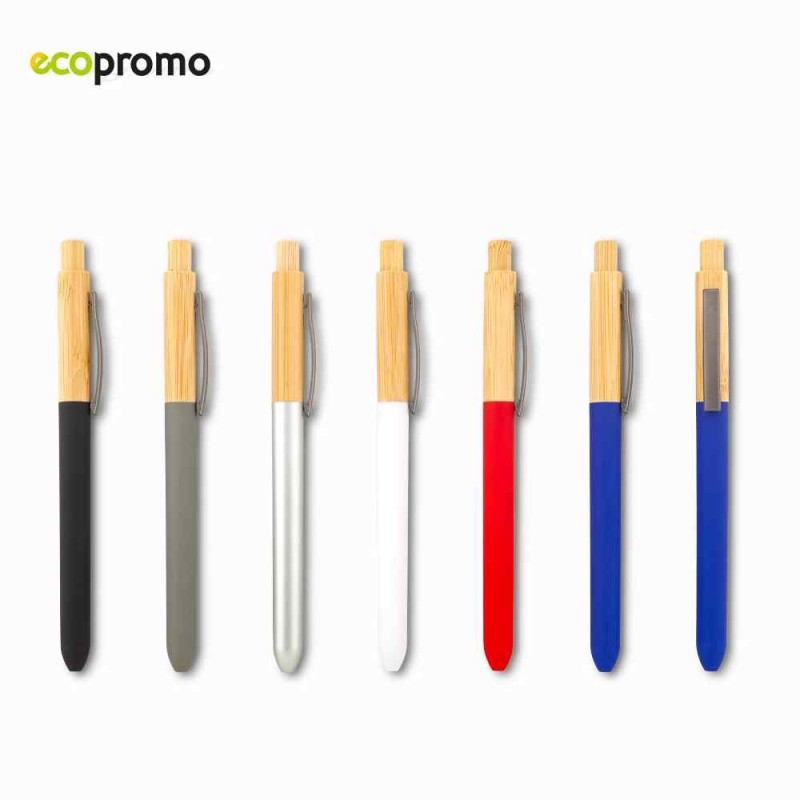 Bolígrafo plástico y bambú. Mecanismo push y clip metálico. Medidas: 14.5 cm. Marca: 2.5 cm / Tampografía. Venta mínima y en múltiplos de caja de 50 unidades.  Ficha Técnica