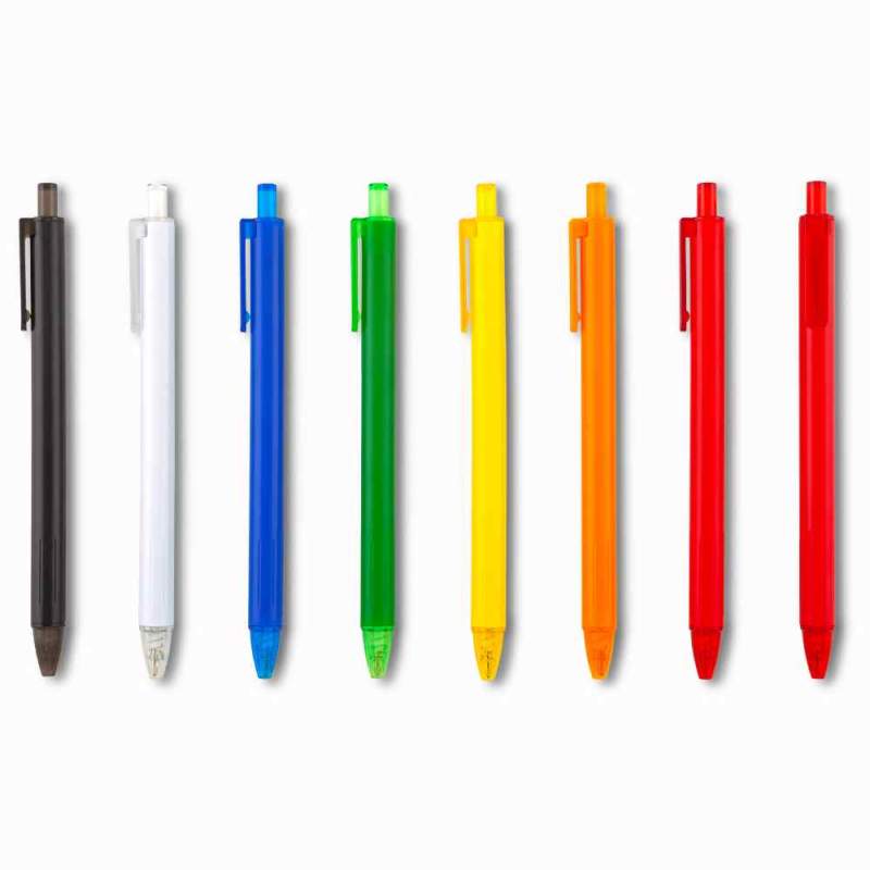 Bolígrafo plástico. Mecanismo push. Medidas: 14 cm. Marca: 4 cm / Tampografía. Venta mínima y en múltiplos de caja de 50 unidades.  Ficha Técnica