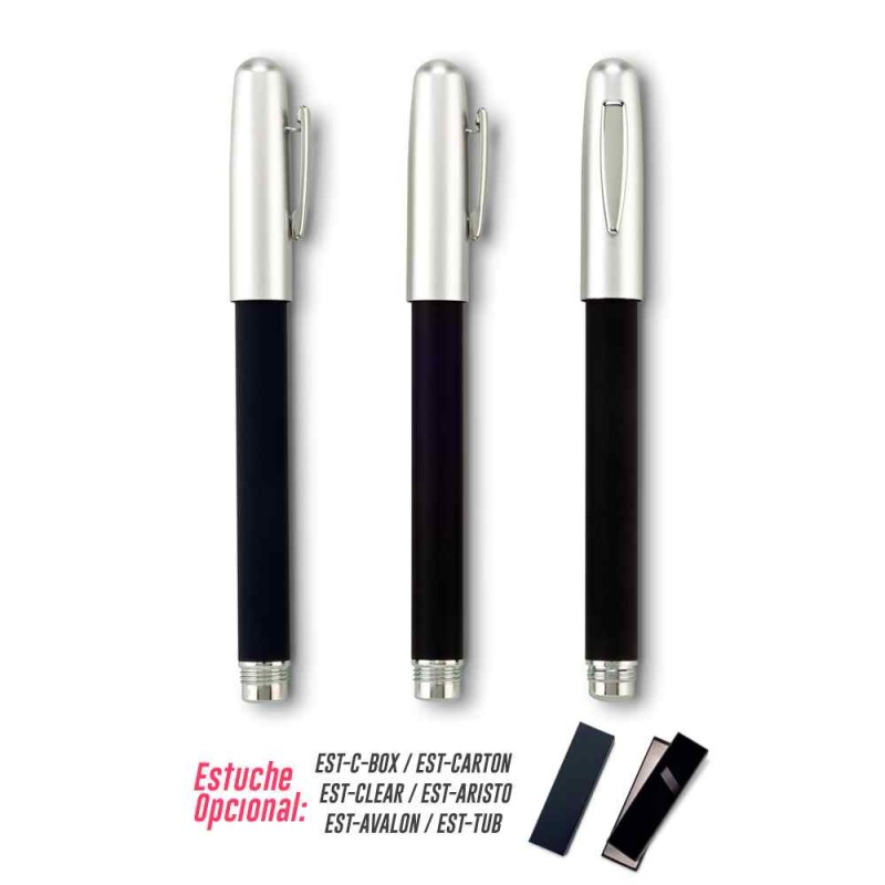 Bolígrafo roller metálico, con terminado de silicona en el barril. Mecanismo de rosca en la tapa. Medidas: 13.6 cm. Marca: 3.5 cm / Tampografía en silicona a una tinta. Venta mínima y en múltiplos de caja de 50 unidades.  Ficha Técnica Ver: EST-C-BOX EST-CARTON EST-CLEAR EST-ARISTO EST-AVALON EST-TUB