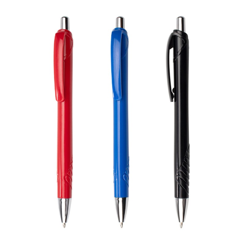 Bolígrafo con cuerpo de color sólido, sistema de apertura retráctil, detalle marcado en la parte inferior y adorno cromado en la punta. (Bolígrafo/Esfero)