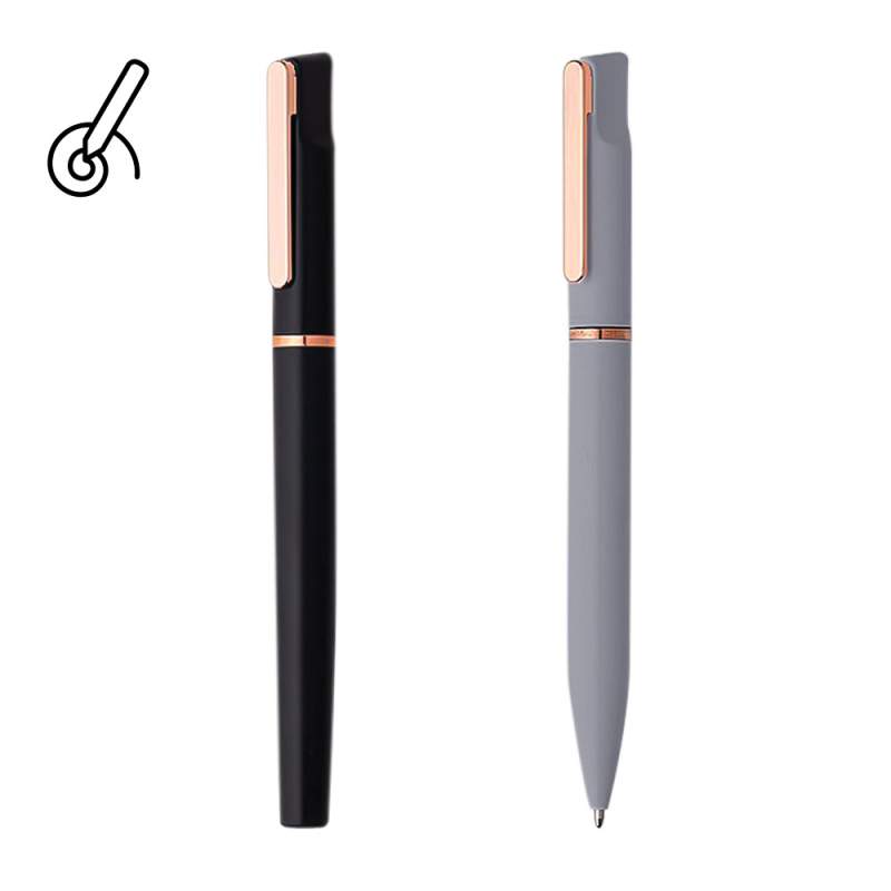 Set de escritura elaborado en aluminio reciclado, compuesto por bolígrafo con mecanismo giratorio (twist) y bolígrafo roller con tapa. Presentación en estuche rígido con detalles metálicos. Diseño elegante, funcional y de líneas clásicas.