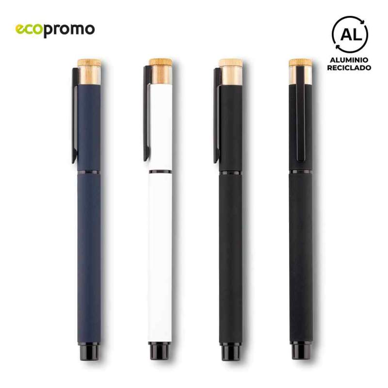Bolígrafo roller en aluminio reciclado con clip metálico. Medidas: 14 cm. Marca: 3.5 cm / Láser / Tampografía. Ficha Técnica Venta mínima y