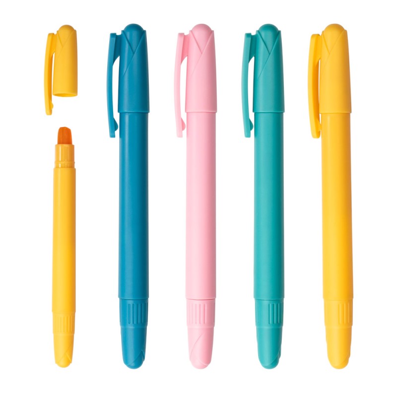 Resaltador con barril y tapa de color sólido. Su punta de cera tipo wax permite un marcado suave y uniforme, sin riesgo de que se seque con el tiempo. Ideal para uso prolongado y ambientes escolares o de oficina.