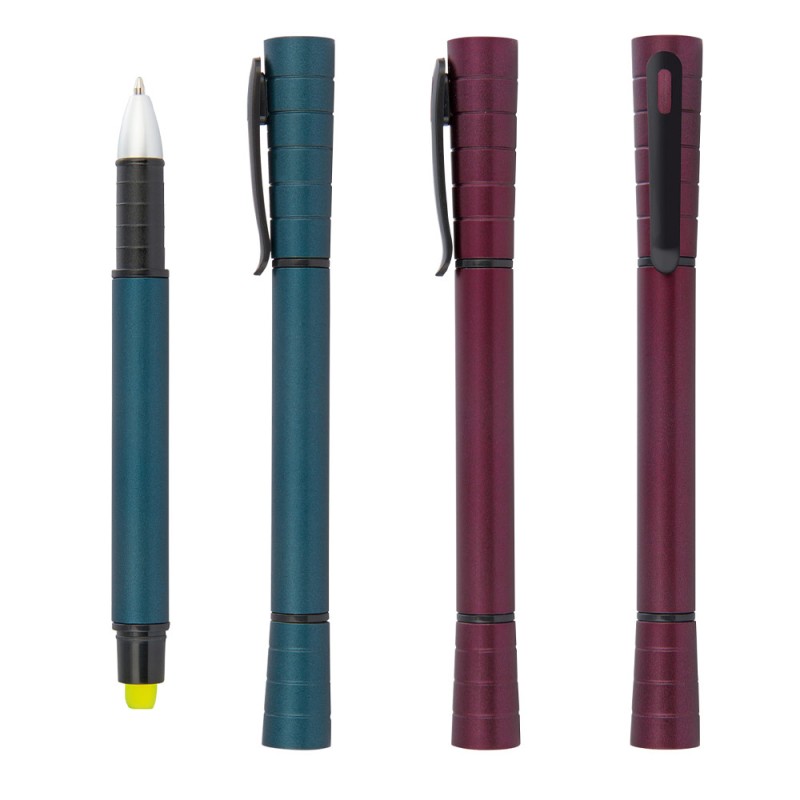 Bolígrafo con resaltador en parafina que no se seca. Doble tapa. (Bolígrafo/Esfero)