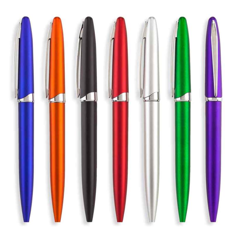 Bolígrafo plástico con mecanismo twist. Clip metálico.Medidas: 13.5 cmMarca: 2.3 cm / TampografíaVenta mínima y en múltiplos de caja de 50 unidades por color.  Ficha Técnica