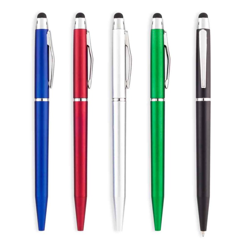 Bolígrafo plástico con stylus. Clip metálico. Medidas: 13.5 cm Marca: 3.5 cm / Tampografía Venta mínima y en múltiplos de caja de 50 unidades p