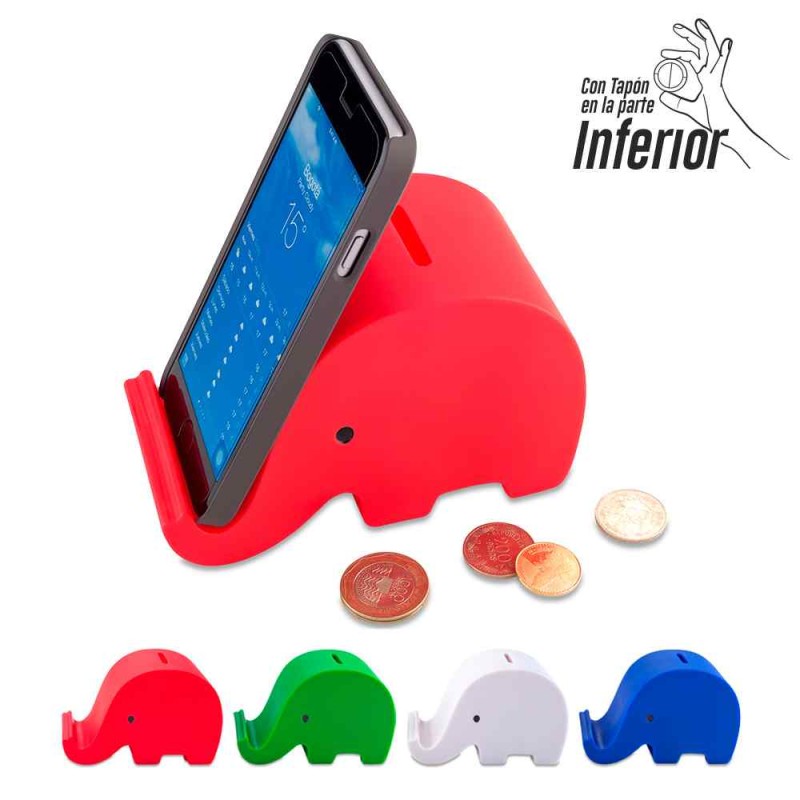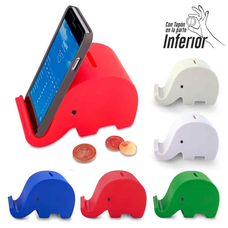 Alcancía portacelular en PVC. Medidas: 13.5 cm x 6.8 cm x 8.3 cm Marca: 4.5 cm / Tampografía