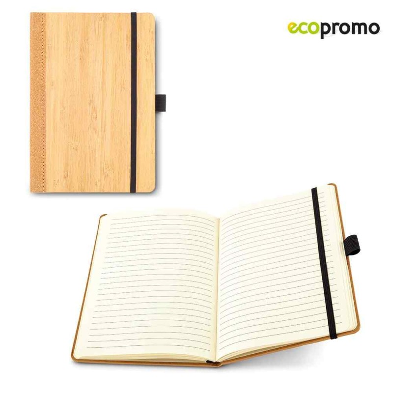 Libreta de 80 hojas, papel con rayas. Cubiertas en bambú y corcho. Cierre elástico. Medidas: 14.5 cm x 21 cm Marca: 5 cm / Láser Ficha Técnica
