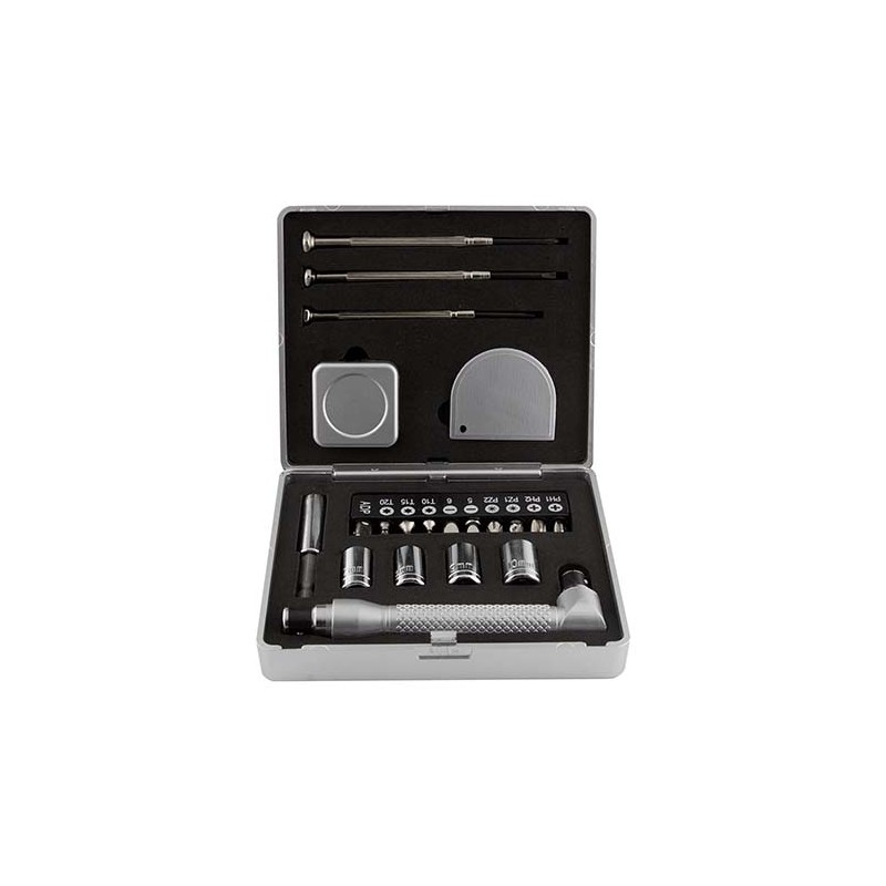 Descripción 1: SET DE HERRAMIENTAS CONRADDescripción 2: Contiene 3 desarmadores de relojero, flexómetro de 1 m, cúter, desarmador con 10 puntas diferentes e intercambiables, dados y exte