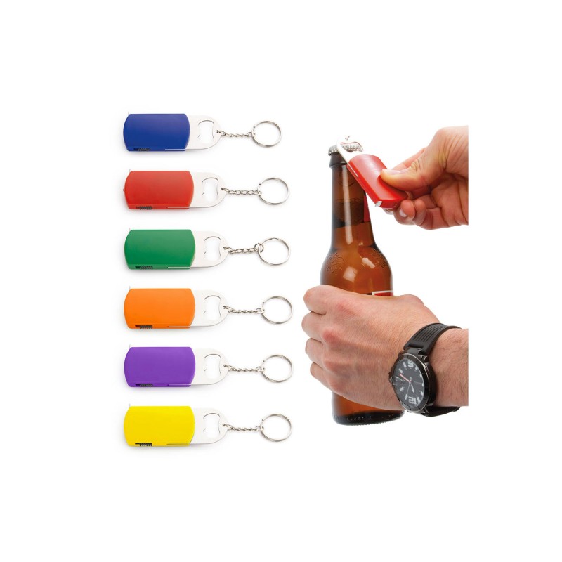 Llavero destapador con cinta métrica metálica de 1 metro/39 pulgadas. Destapador y linterna de un LED.