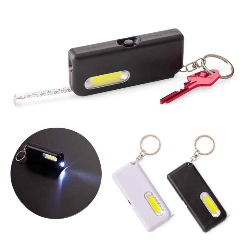 Llavero plástico con metro de 1 mt. Con dos luz LED. Medidas: 8 cm x 3.5 cm x 1.5 cm. Marca: 2.5 cm / Tampografía. Ficha Técnica