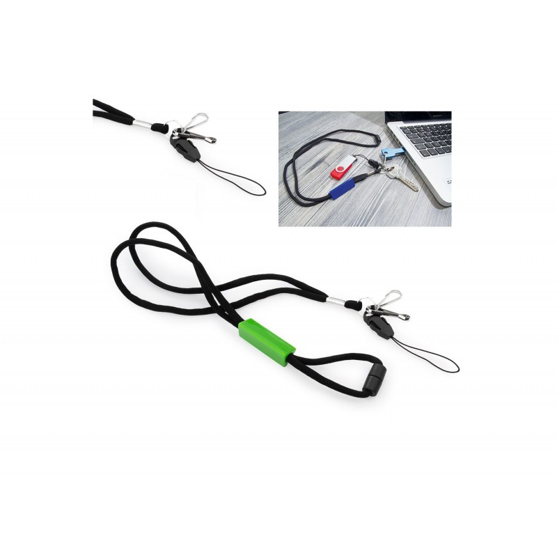 Cordón con cuerda para portar llaves, USB etc. Pieza inferior triangular adecuado para marca.