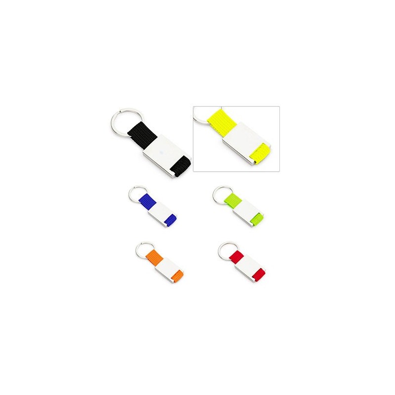 Llavero metálico con reata y argolla. Amplia área de marca. Acabado cromado brillante.