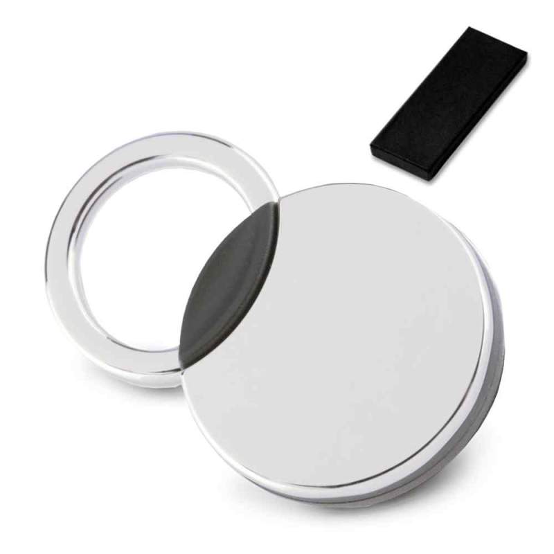 Metálico. Empaque Caja Individual. Medidas: 3.1 cm diámetro Marca: 1.5 cm / Láser  Ficha Técnica