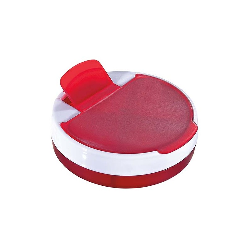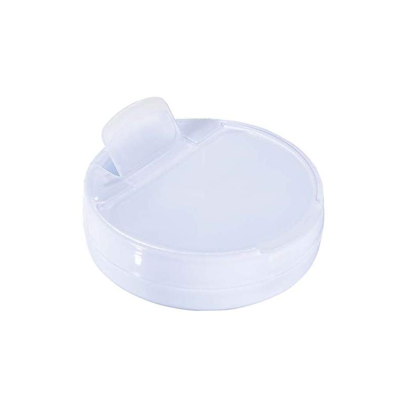 Descripción 1: PASTILLERO DELTADescripción 2: Pastillero con 4 compartimentos.Tamaño: 7 cm DiámetroPeso: 13Altura: 0.33Anchura: 0.385Longitud: 0.58Tecnica de impresión: Serigrafía / Ta