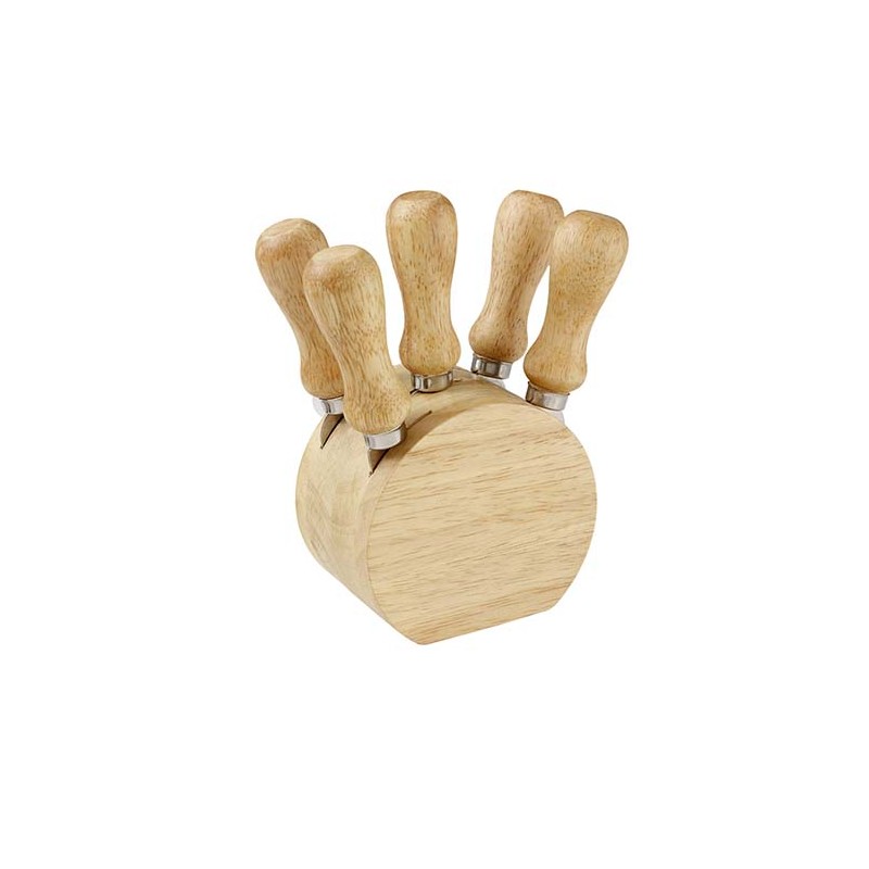 Descripción 1: SET BILBAODescripción 2: Set de madera, con 1 base con 4 cuchillos y 1 tenedor para quesos. La madera es un producto natural el cual puede presentar variaciones en tonalidades y vetas.Tamaño: 9.2 x 14.9 cmPeso: 10Altura: 0.315Anchura: 0.255Longitud: 0.315Tecnica de impresión: Láser / SerigrafíaArea de impresión: 5 x 5 cm Base