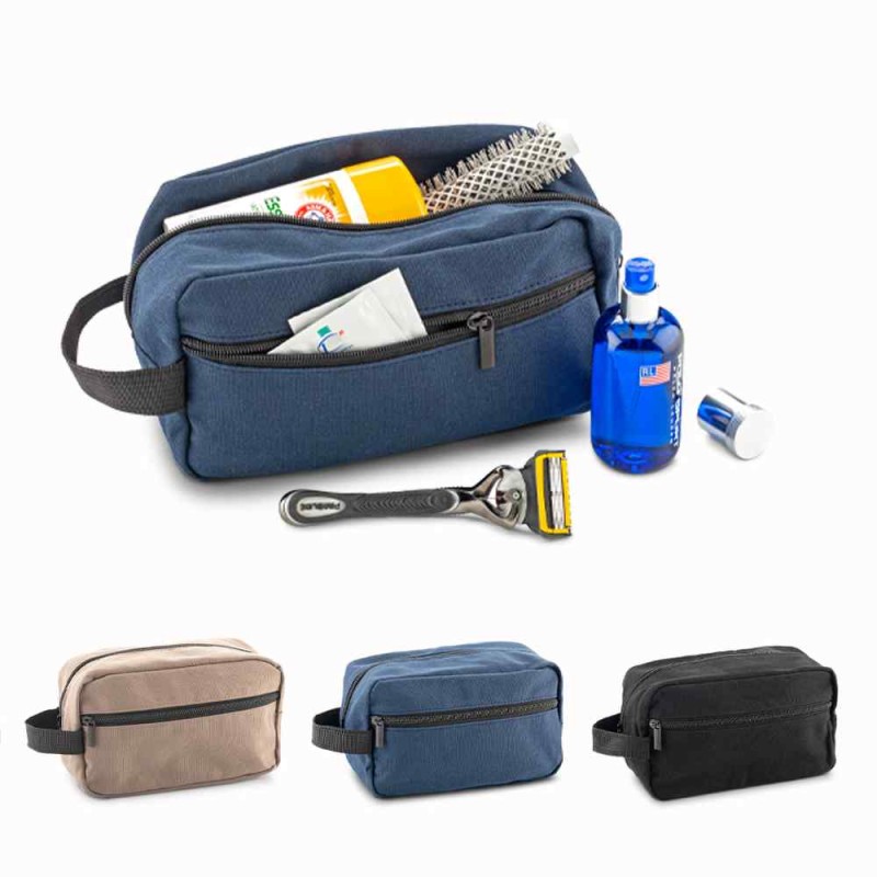 En poliéster y algodón con dos bolsillos externos con cremallera y agarradera lateral. Medidas: 23 cm x 13.5 cm x 11 cm. Marca: 7 cm / Screen